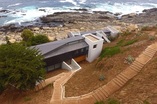 Las casas se ubican en un terreno en primera línea de la costa de Zapallar que posee una pendiente pronunciada que desafía su emplazamiento pero a la vez es el protagonista del proyecto. Por este motivo, nuestra propuesta consiste en dos volúmenes de estructura liviana que se posan sobre el terreno en una serie de elementos monolíticos de hormigón armado, interviniendo lo menos posible el entorno y permitiendo una caída natural de las aguas lluvias.